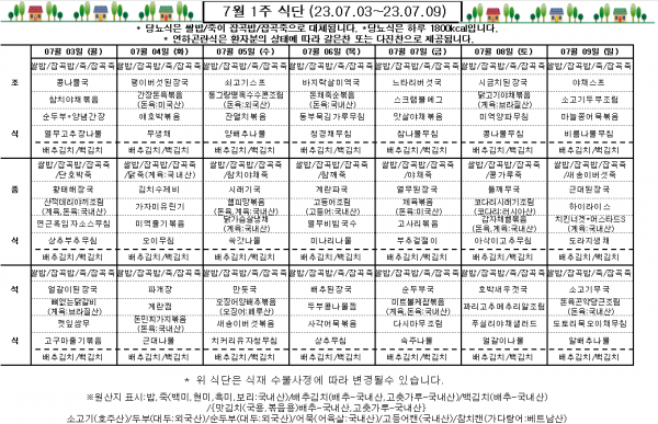 7월 1주 식단표