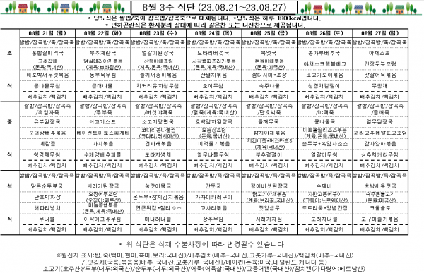 8월 3주 식단표