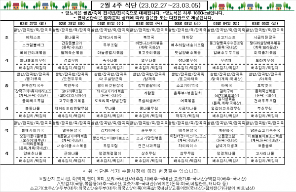 2월 4주 식단표