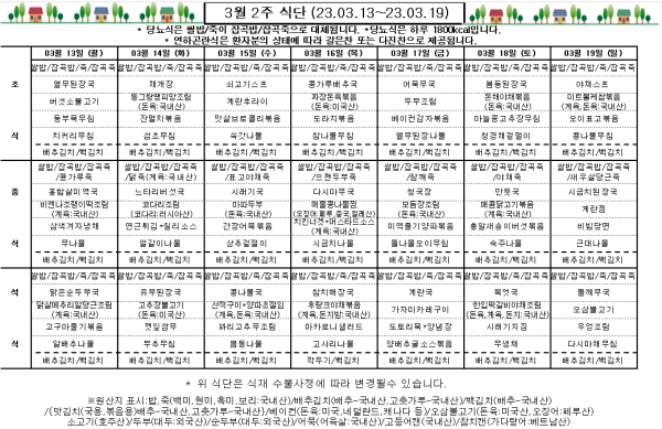 3월 2주 식단표
