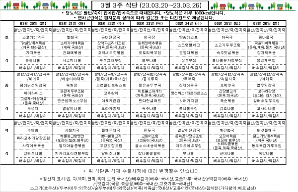 3월 3주 식단표