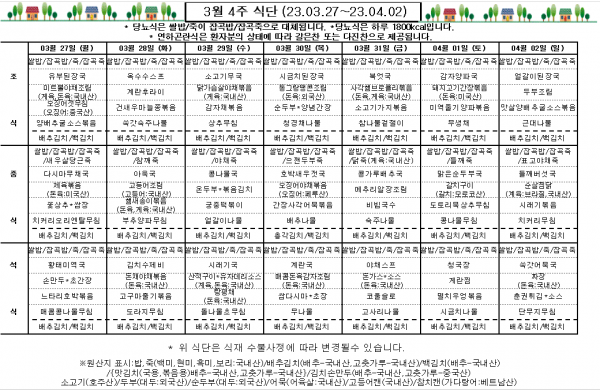 "금주의 식단 메뉴를 확인 할 수 있습니다."