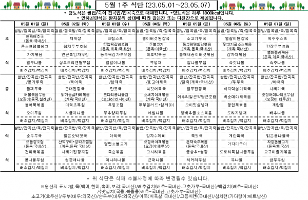"금주의 식단 메뉴를 확인 할 수 있습니다."