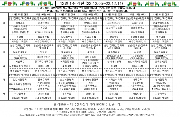 "금주의 식단 메뉴를 확인 할 수 있습니다."