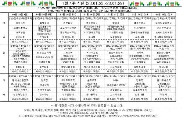 1월 4주 식단표