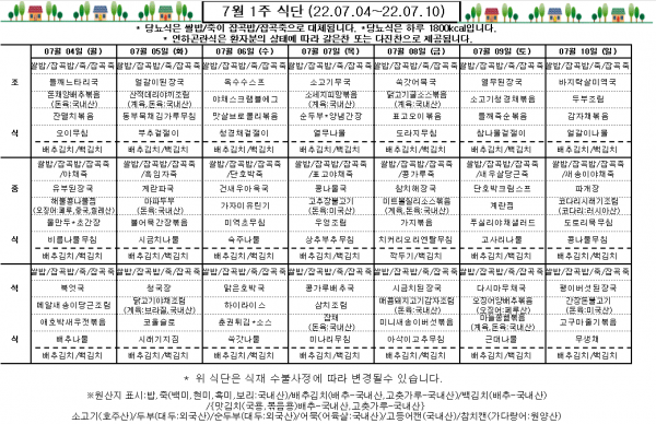 "금주의 식단 메뉴를 확인 할 수 있습니다."