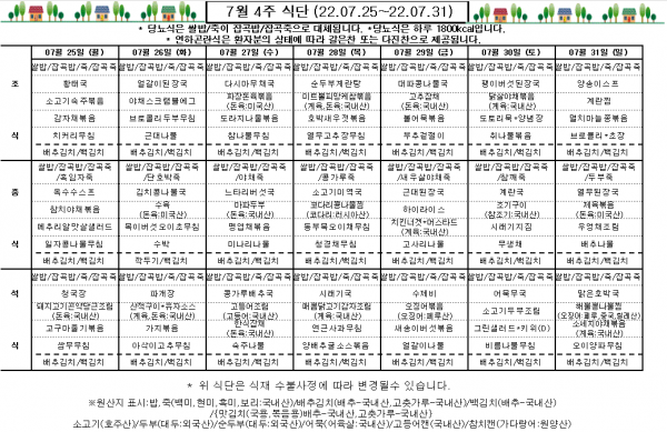 "금주의 식단 메뉴를 확인 할 수 있습니다."