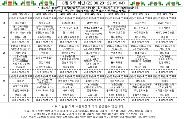 8월 5주 식단표