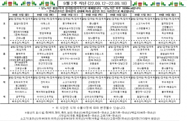 9월 2주 식단표
