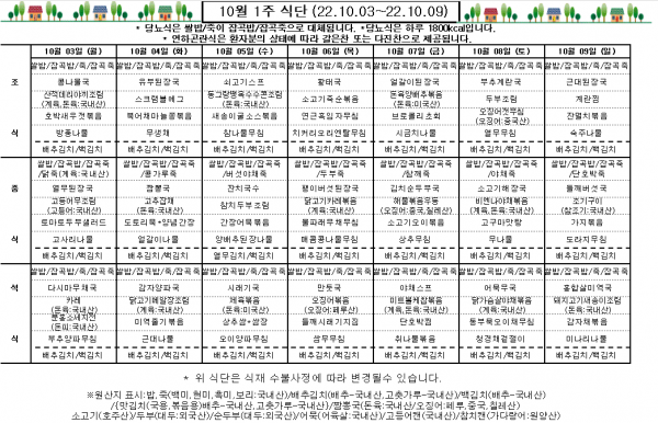 "금주의 식단 메뉴를 확인 할 수 있습니다."