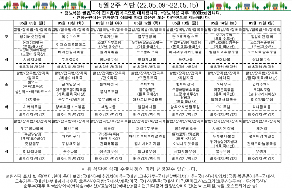 5월 2주 식단표