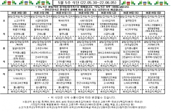 "금주의 식단 메뉴를 확인 할 수 있습니다."