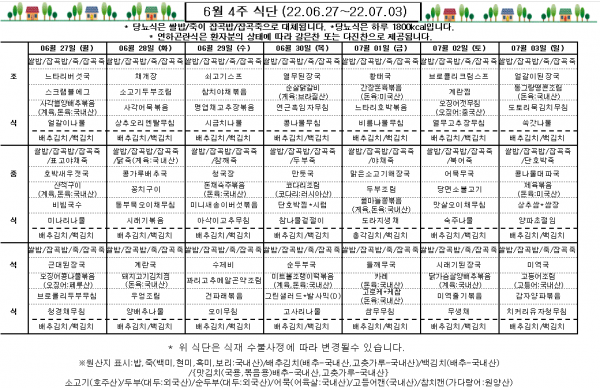 6월 4주 식단표
