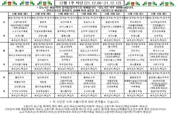 "금주의 식단 메뉴를 확인 할 수 있습니다."