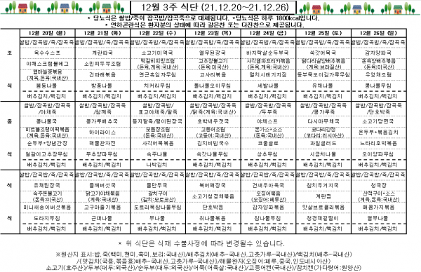 12월 3주 식단표