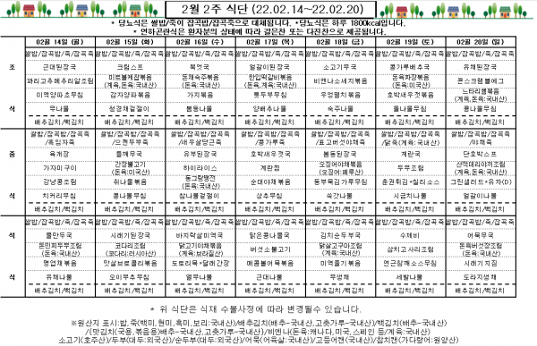 2월 2주 식단표