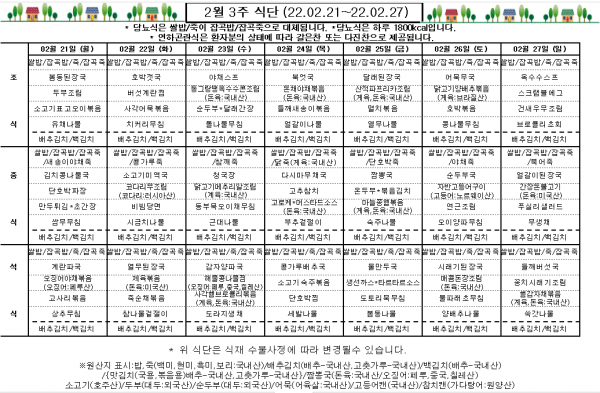 "금주의 식단 메뉴를 확인 할 수 있습니다."