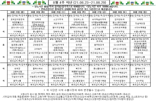 "금주의 식단 메뉴를 확인 할 수 있습니다."