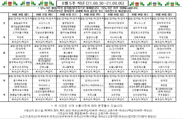 "금주의 식단 메뉴를 확인 할 수 있습니다."