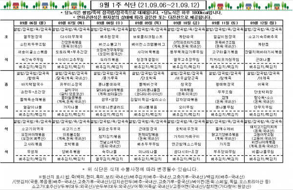 "금주의 식단 메뉴를 확인 할 수 있습니다."