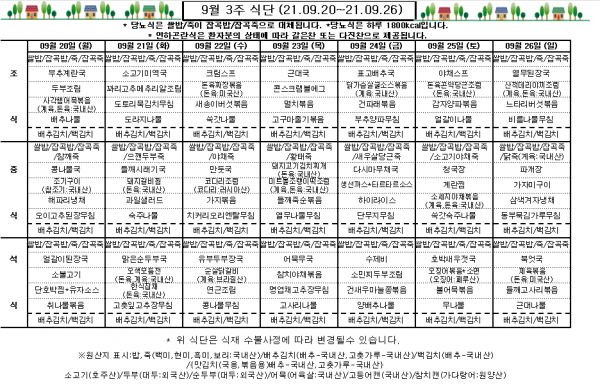 "금주의 식단 메뉴를 확인 할 수 있습니다."