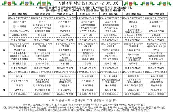5월 4주 식단표
