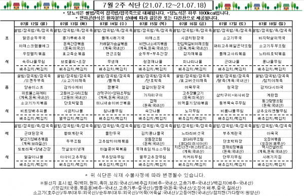 "금주의 식단 메뉴를 확인 할 수 있습니다."