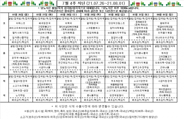 7월 4주 식단표
