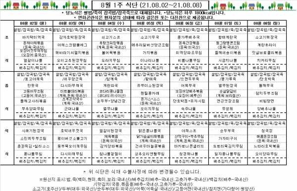 8월 1주 식단표