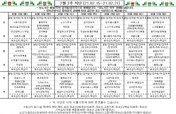 2월 3주 식단표