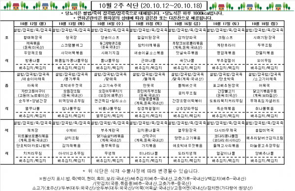 10월 2주 식단표
