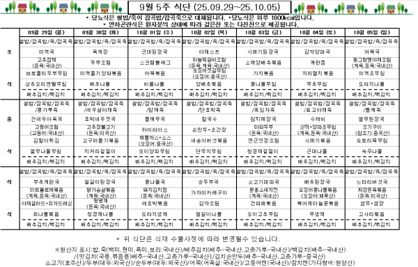 9월 5주 식단표