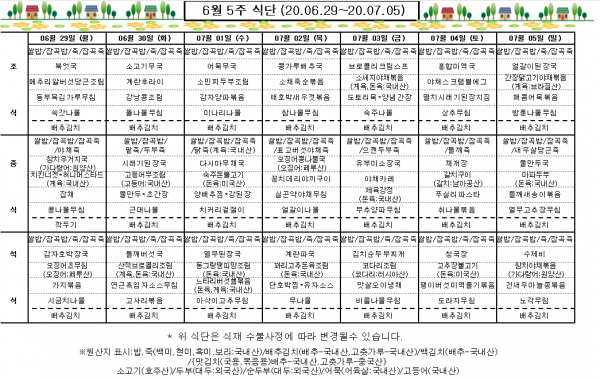 6월 5주 식단표