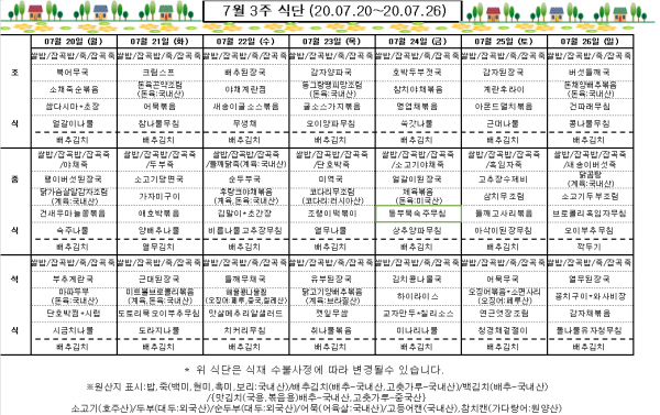 7월 3주 식단표