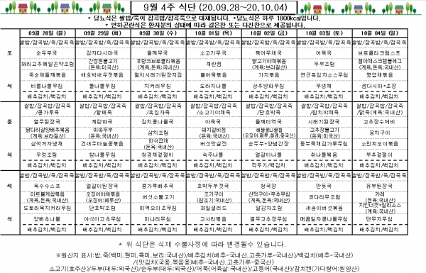 9월 4주 식단표