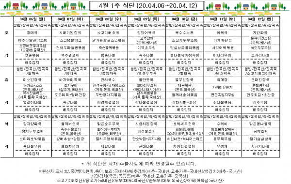 4월 1주 식단표