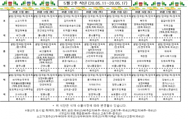 5월 2주 식단표