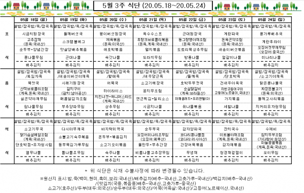 5월 3주 식단표