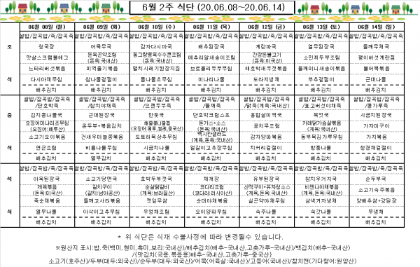 6월 2주 식단표