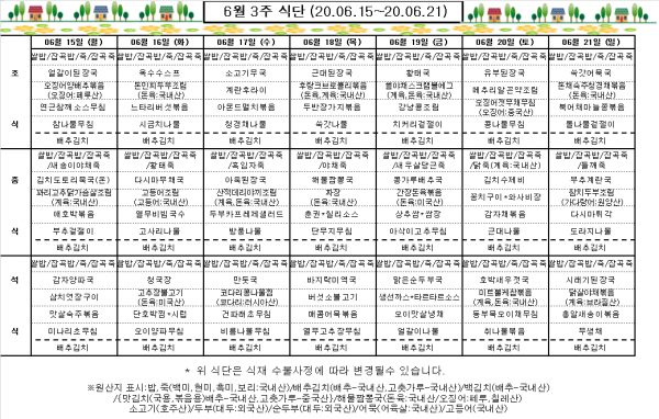 "금주의 식단 메뉴를 확인 할 수 있습니다."