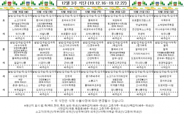 12월 3주 식단표
