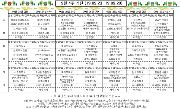9월 4주 식단표
