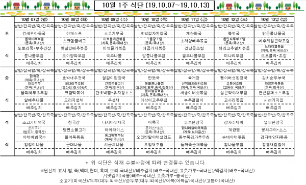 10월 1주 식단표