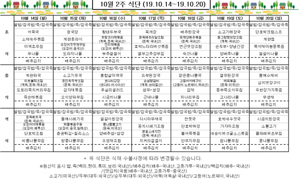 "금주의 식단 메뉴를 확인 할 수 있습니다."