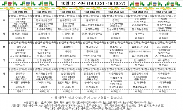 10월 3주 식단표