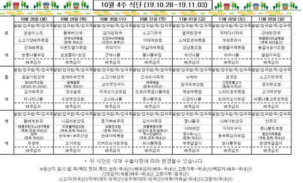 "금주의 식단 메뉴를 확인 할 수 있습니다."