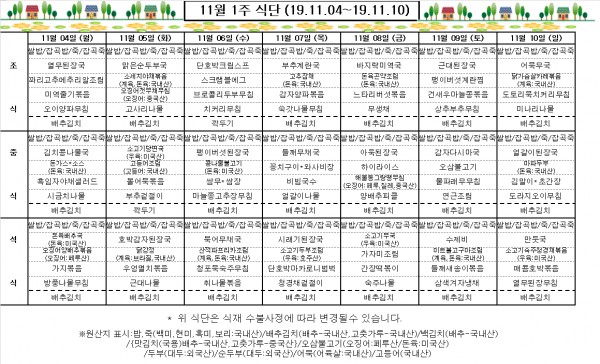 11월 1주 식단표