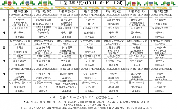 "금주의 식단 메뉴를 확인 할 수 있습니다."