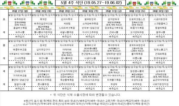 5월 4주 식단표
