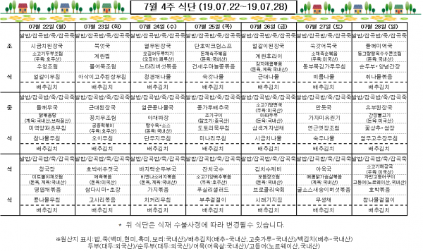 7월 4주 식단표